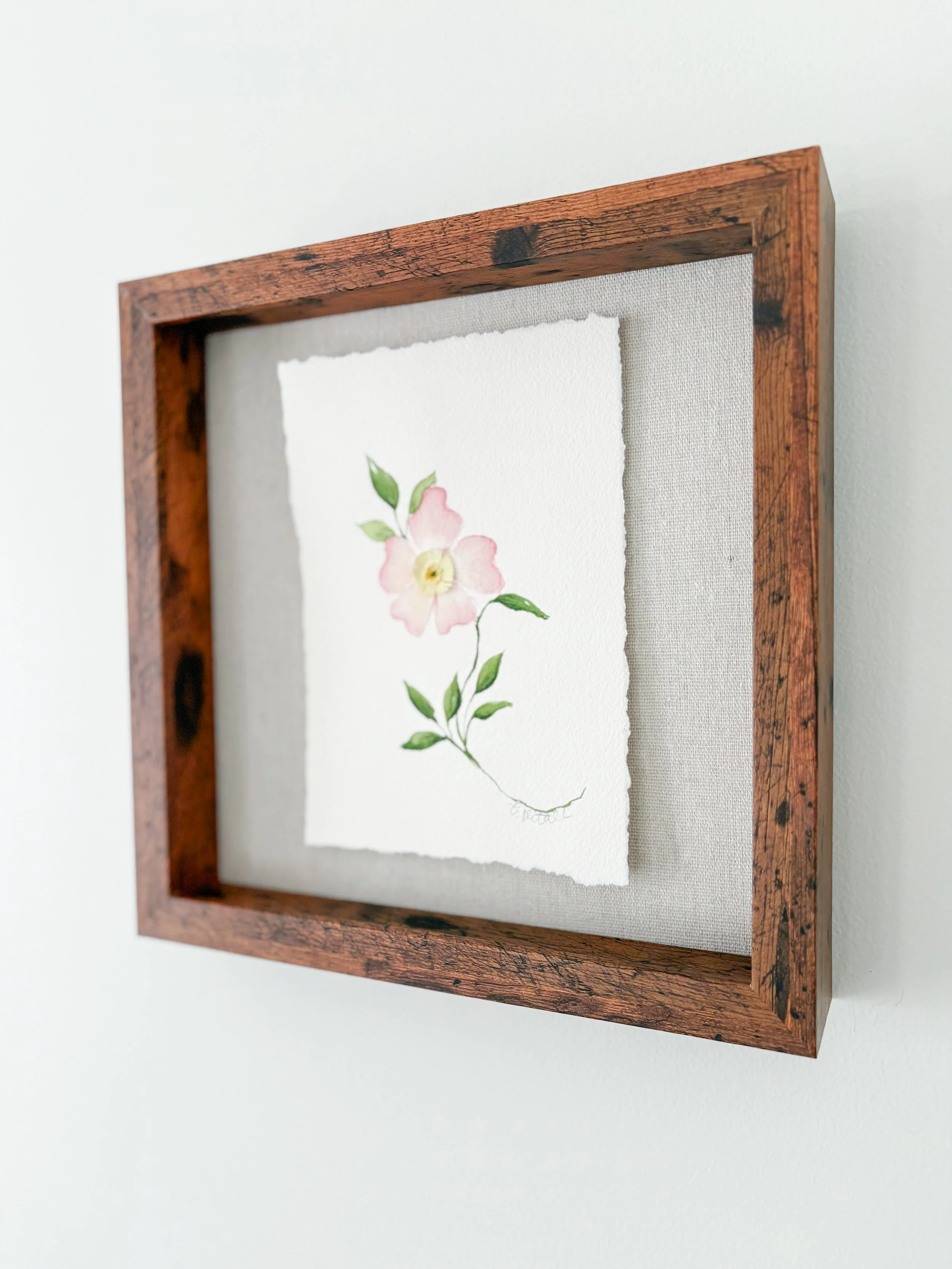 Pale purples, butter yellows, blush and deep plum - all layered against warm, tea-stained grounds that feel like old paper and older poems. Every petal cut by hand. Every piece one of a kind, framed and ready to hang.