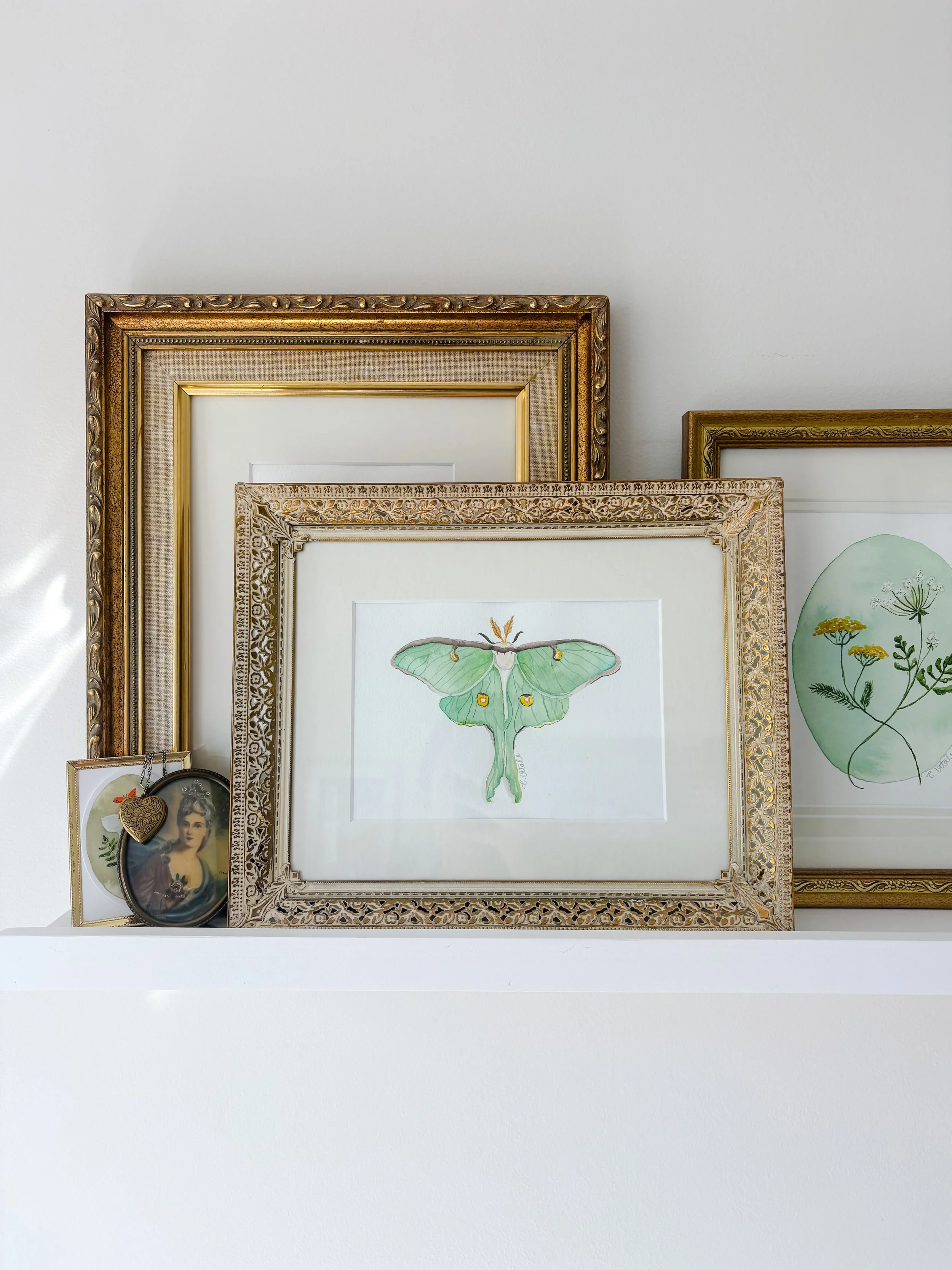 Each original artwork comes set in its own found vintage frame (brass, oval, and delightfully timeworn) - so no two are ever the same. These aren’t just paintings, but little relics of enchantment, ready to bring their wild, witchy wonder to your walls.